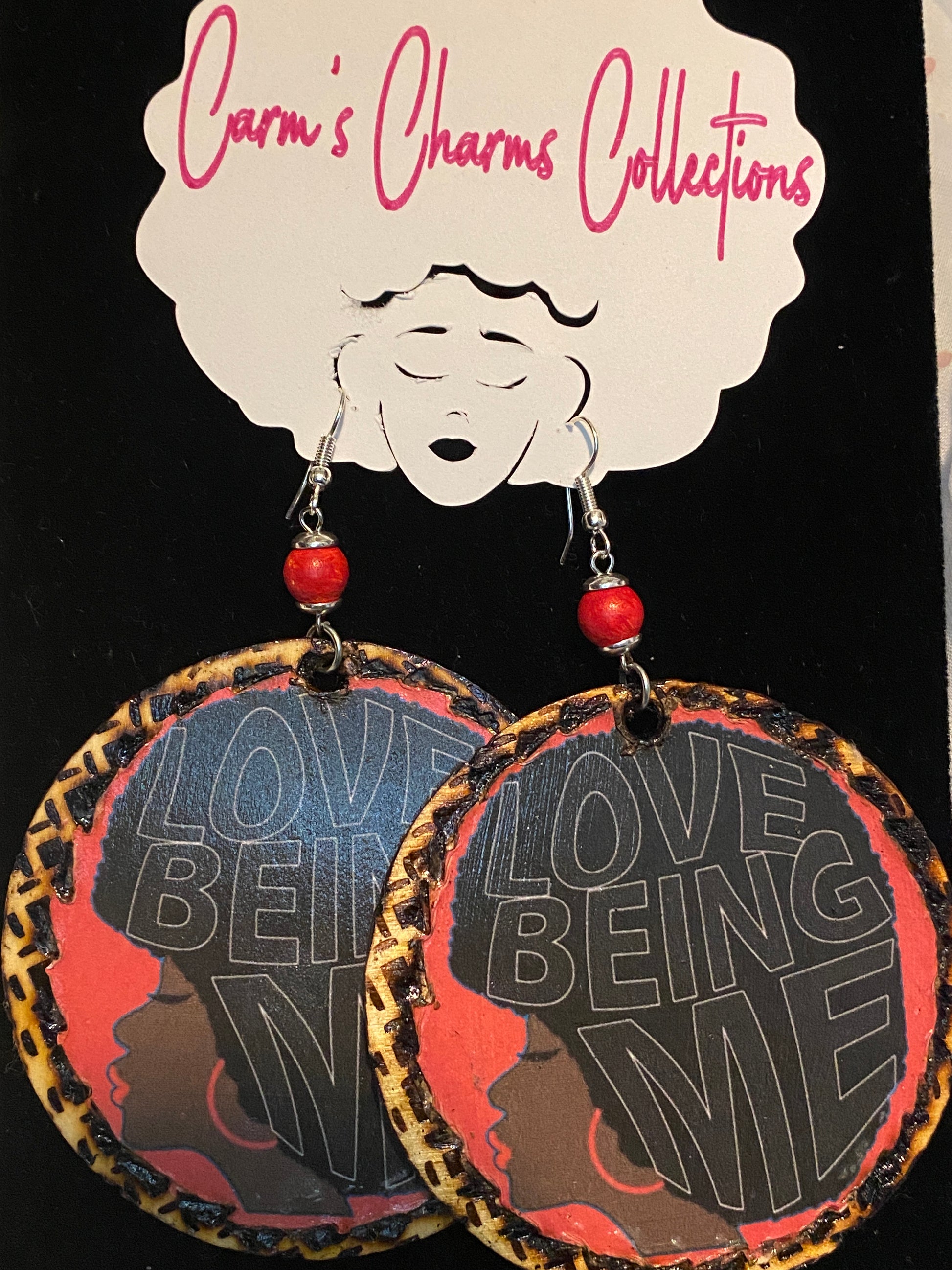 Celebrate self-love with these Afrocentric earrings that remind you to embrace your natural beauty. Featuring basswood and hypoallergenic fishhooks, each pair includes a subtle red bead for a distinctive touch. Designed to affirm your individuality, these earrings empower you to express your style and confidence, honoring your authentic self even when the world may not. Perfect for representing natural hair and cultural pride with elegance.